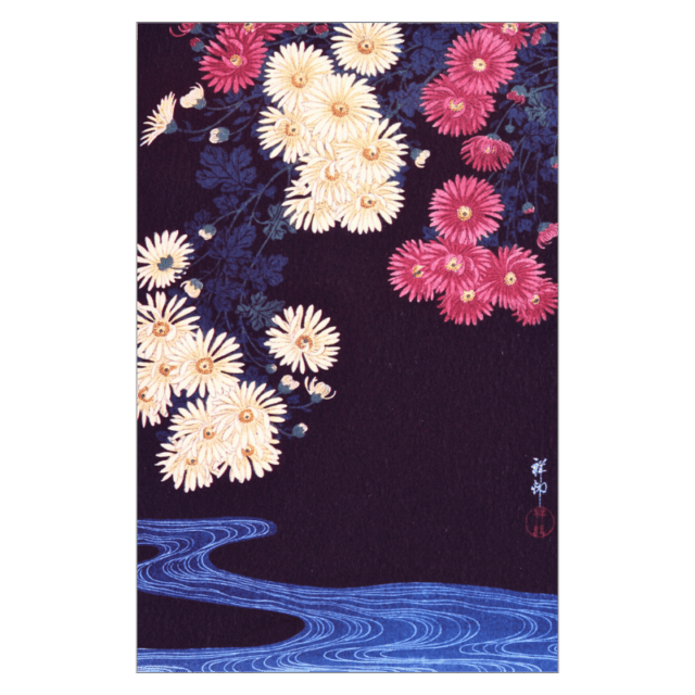 コロタイプ絵はがき〈季趣五題 あきそまる 菊花に流水〉小原古邨 BC-039