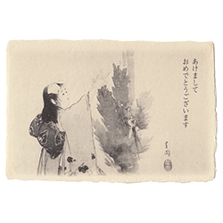 耳付コロタイプ《便利堂の年賀はがき》「明治四十五年勅題 松上鶴 百名家絵葉書」より BC-68