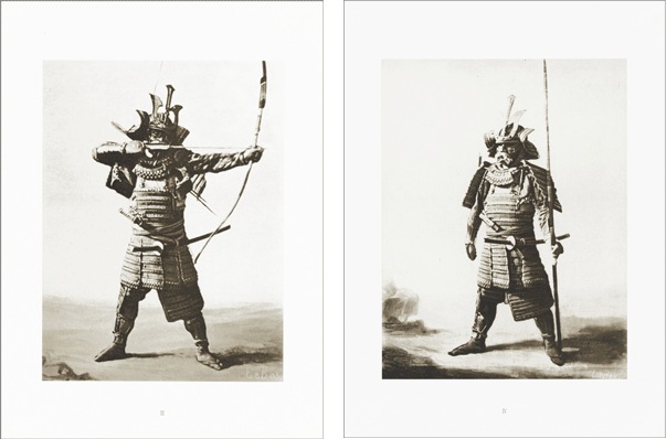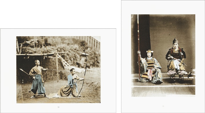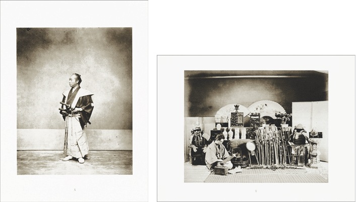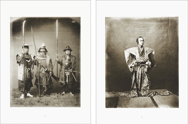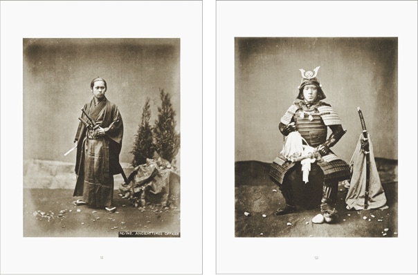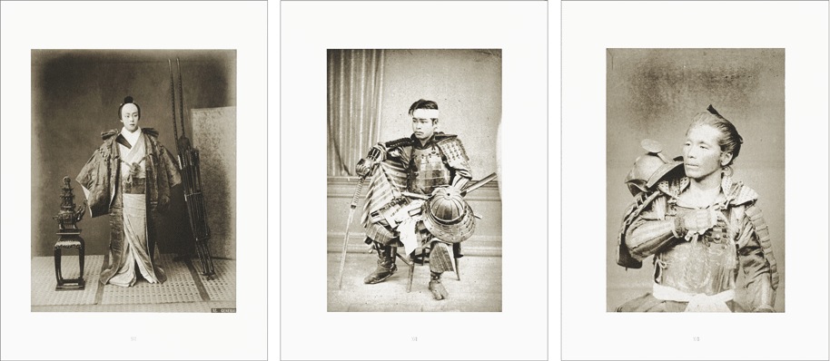 このポートフォリオは、日本初上陸したフランス国立ギメ東洋美術館所蔵の、急激な社会変化とともに姿を消すこととなった武士の肖像に焦点をあてたヴィンテージ・プリントのうち、26作品を20枚のコロタイプ・プリントにしたものです。24作品は原本のヴィンテージ・プリントの雰囲気により近いセピア色に刷り上げ、2作品はコロタイプの多色印刷の上さらに1点1点手作業で彩色を施しています。