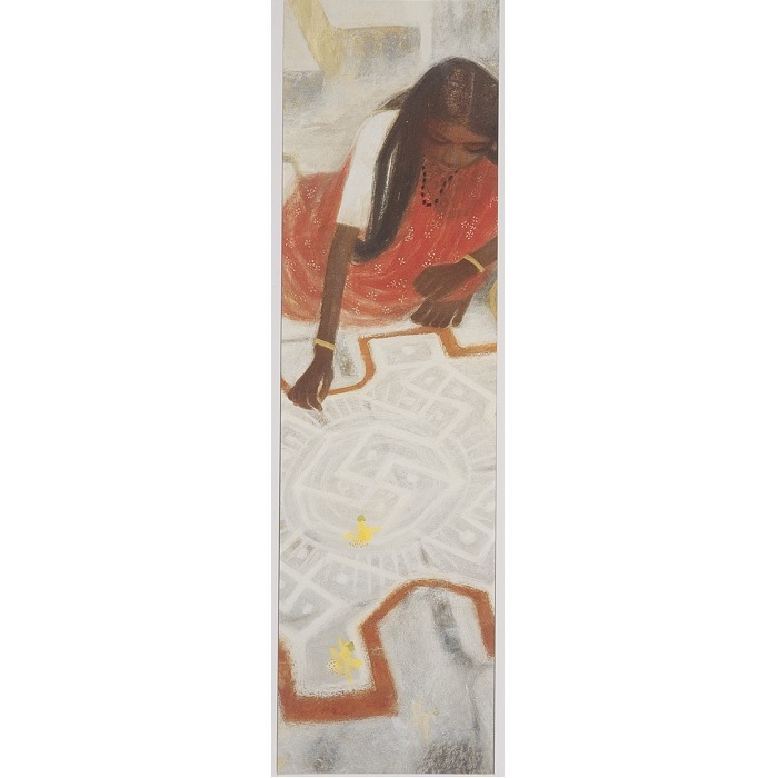 秋野不矩(あきの ふく) 明治41~平成13年(1908~2001)、静岡県生まれ。「創造美術」に参加し、新しい日本画の創造を目指す。京都市立美術大学助教授時代にインド