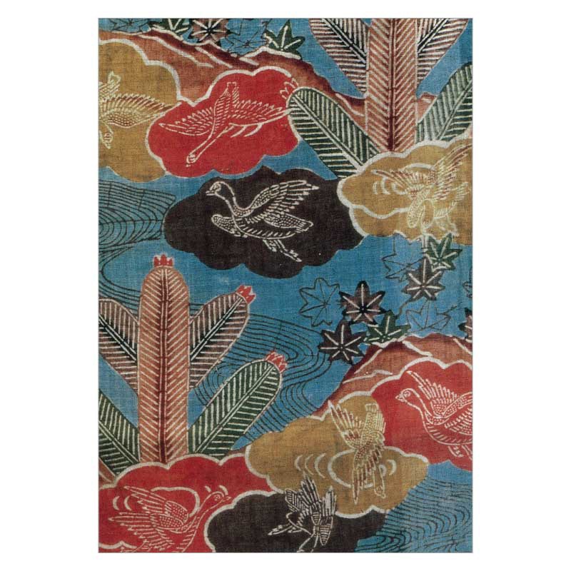 ◆絵はがき〈藍色麻地若松紅葉雁模様琉球紅型衣裳〉◆ 江戸時代 東京国立博物館蔵