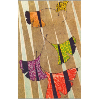コロタイプ絵はがき〈季趣五題 あきそまる 滑稽新聞 銀杏の葉〉BC-038