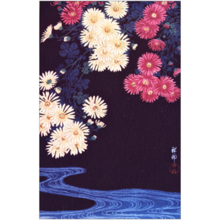 コロタイプ絵はがき〈季趣五題 あきそまる 菊花に流水〉小原古邨 BC-039