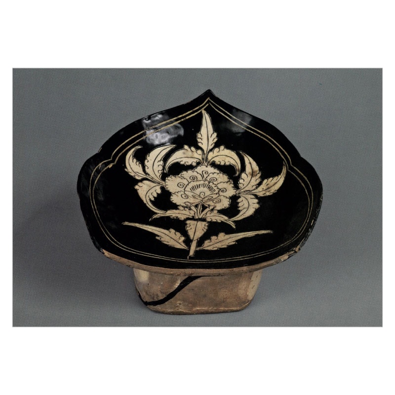 【福袋対象】絵はがき〈白釉黒地白花牡丹文枕〉中国・磁州窯 T-399