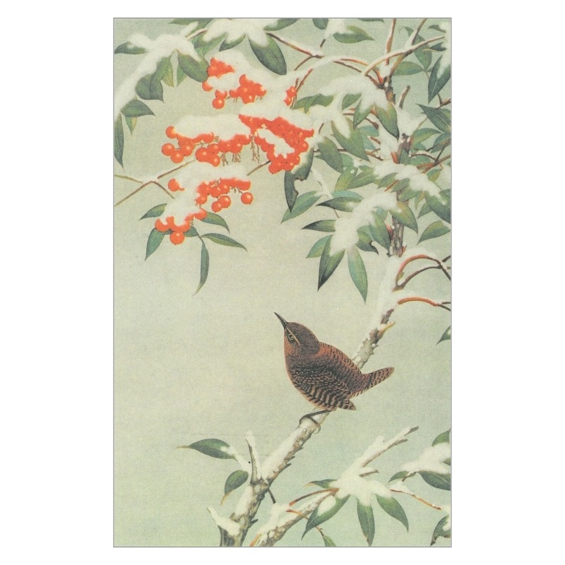 ◆コロタイプ絵はがき〈季趣五題 ふゆこもり ミソサザイとナンテン〉◆