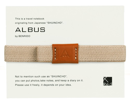 このALBUSロゴが空押しされたループバンドは、ALBUSのほかB6サイズのノートや手帳にもご利用いただけます。