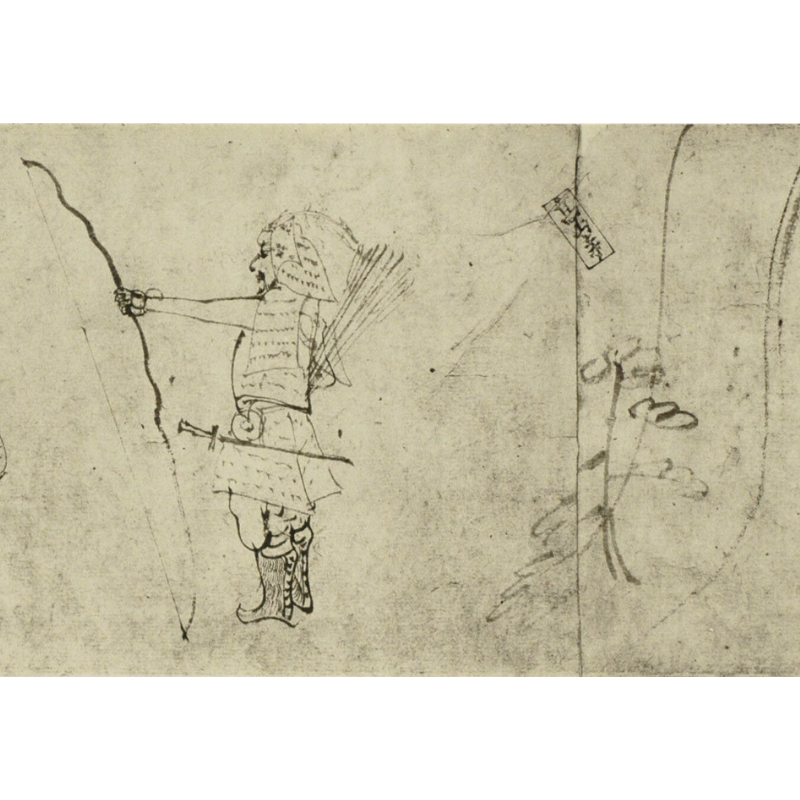 桓武天皇が平安京へ遷都するに際し、都の平穏を祈るため巨大な武人像を埋めた将軍塚を築造する様子を描いた絵巻です。