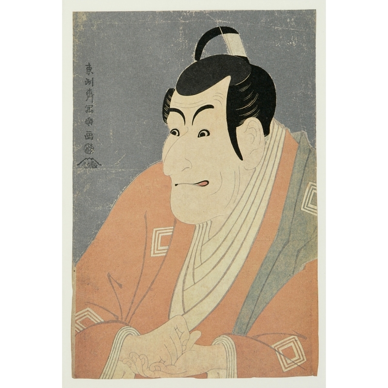 生没年不詳。寛政6年(1794)から翌年正月まで上映された歌舞伎狂言に取材して多くの役者絵版画を集中的に制作しました。その後浮世絵界から退いたため、消息不明の謎多き浮世絵師です。140余点の版画作品が残されています。代表作は《重文 三世大谷鬼次の奴江戸兵衛》《重文 市川蝦蔵の竹村定之進》など。