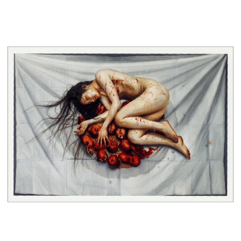 諏訪敦氏の油彩画『Stereotype』シリーズの一作品。 絵画でありながら写真のような精緻な人体表現がなされた作風が特徴的です。