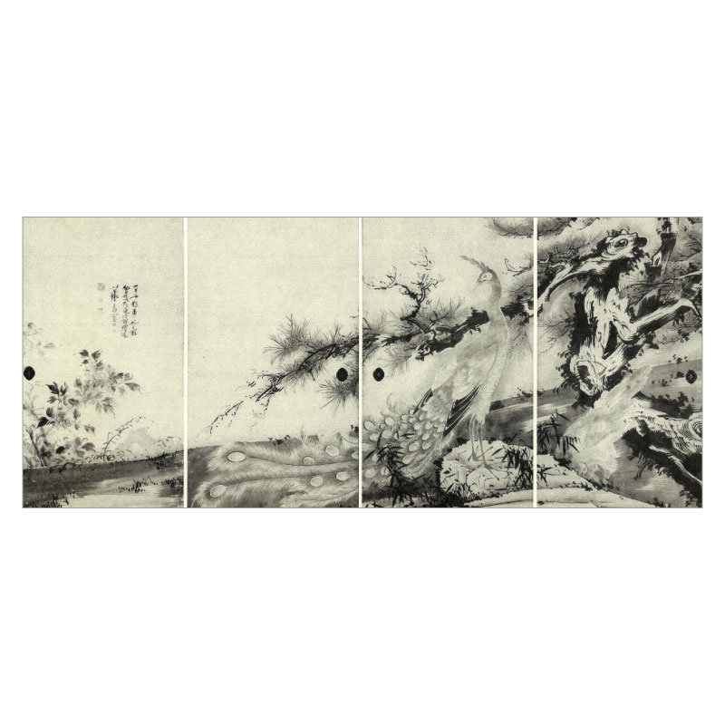 ◆コロタイプ長型はがき〈松に孔雀図襖〉◆