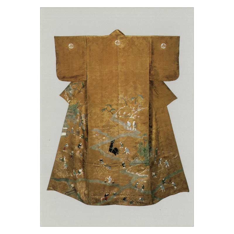 ◆絵はがき〈小袖 茶綸子地 四季耕作風景模様〉◆ 江戸時代 東京国立博物館蔵
