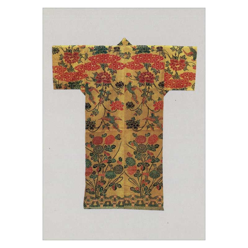 ◆絵はがき〈黄木綿地菊牡丹尾長鳥模様琉球紅型衣裳〉◆ 明治時代 東京国立博物館蔵