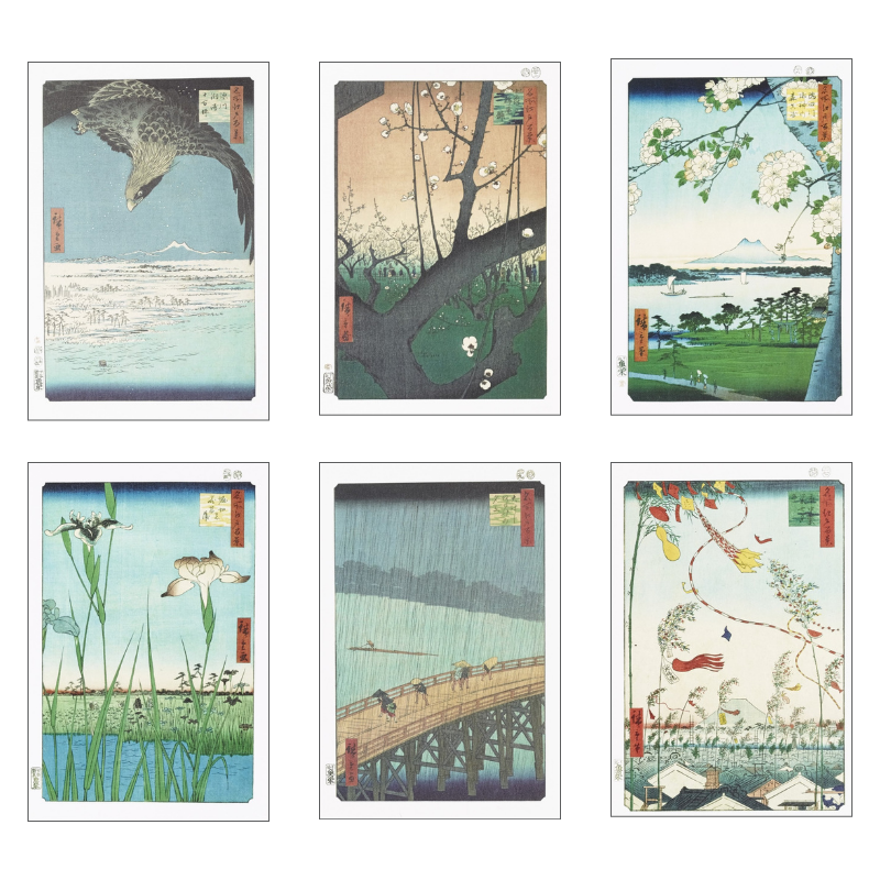 絵はがきセット〈名所江戸百景より十二ヶ月江戸めぐり〉(12枚組)
