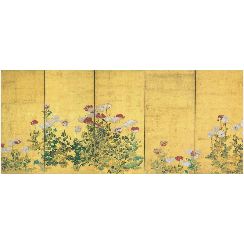 ◆長型はがき〈芥子図 (部分)〉 BW-002◆ 伊年印 江戸時代 17世紀 京都国立博物館蔵