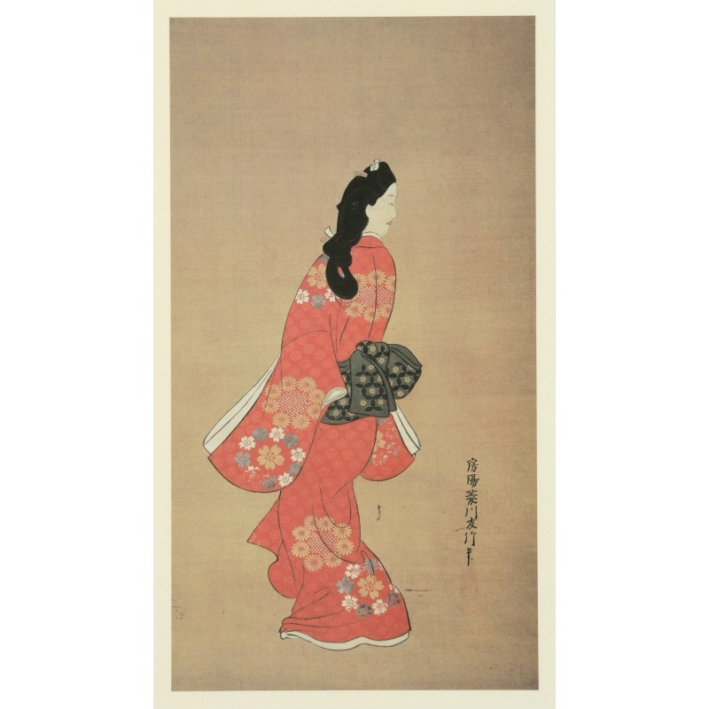 生年不祥~元禄7年(?~1694)、浮世絵の祖と呼ばれる絵師です。それまで本の挿絵でしかなかった浮世絵版画をひとつの作品と捉え直し、浮世絵と言うジャンルを確立しました。美人画での評価も高く、師宣の描く女性像は「師宣の美女こそ江戸女」と賞賛され人気を博しました。代表作は《見返り美人図 》《重文 歌舞伎図》など。