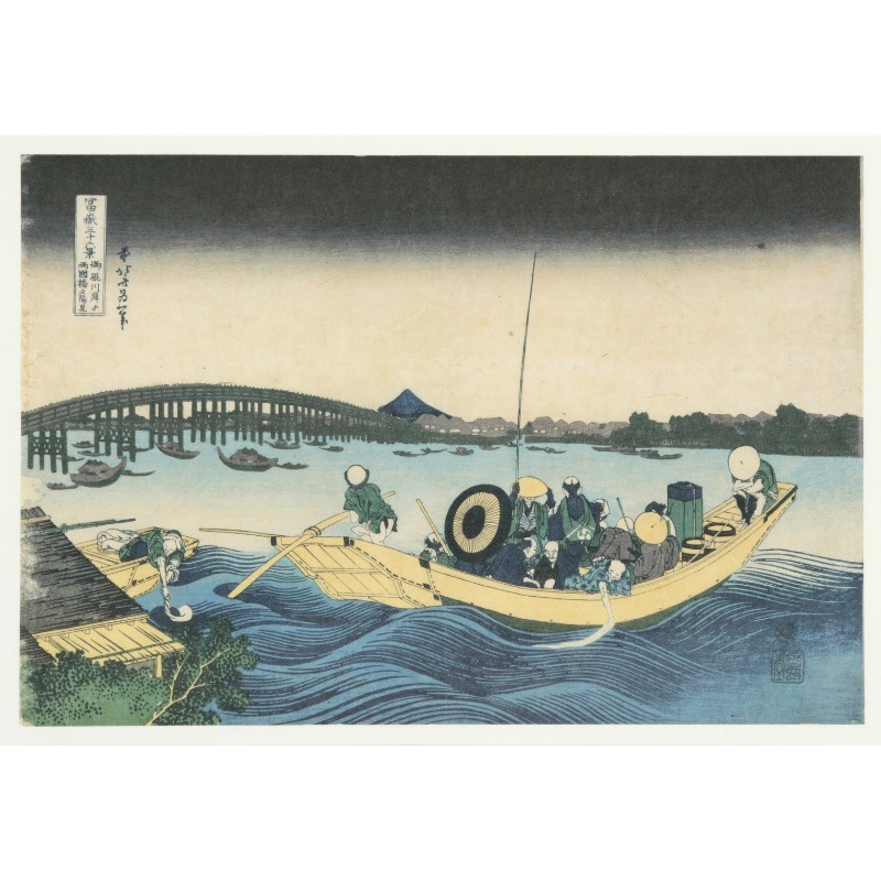 ◆額絵〈冨嶽三十六景 御廐川岸より両国橋夕陽見〉◆